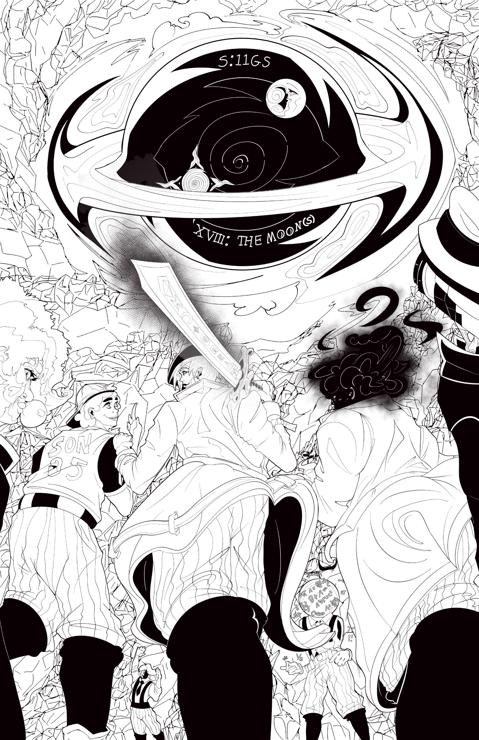 A fully shaded composition fit for a comic cover or splash image in a book.